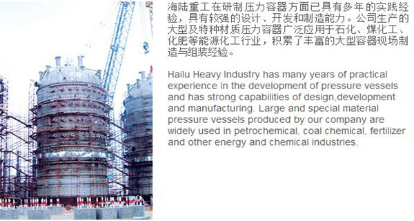 蘇州海陸重工股份有限公司位于江蘇省張家港市開發(fā)區(qū),是國內(nèi)一流的節(jié)能環(huán)保設(shè)備的專業(yè)設(shè)計制造企業(yè),目前并已初步形成鍋爐產(chǎn)品、大型壓力容器、核電設(shè)備、低溫產(chǎn)品、環(huán)保工程共同發(fā)展的業(yè)務(wù)格局。公司創(chuàng)建于1956年,注冊資本51640萬元,占地面積近50萬平米。公司下設(shè)八個控股子公司,一個余熱鍋爐研究所,在瑞士、北京、武漢、南京、上海、杭州、廣州等地設(shè)立分支機構(gòu),擁有雄厚的研發(fā)實力。公司秉承“科技領(lǐng)航、業(yè)界先鋒”的發(fā)展理念,注重研究廢熱、余熱利用和環(huán)境保護相結(jié)合的新技術(shù)研發(fā),自主設(shè)計能力居同行前列;公司承擔(dān)過國家863計劃,江蘇省科技成果轉(zhuǎn)化專項資金,榮獲國家科技進步二等獎,產(chǎn)品擁有核心自主知識產(chǎn)權(quán)并取得專利50多項;公司推行國際先進的管理體系標準和認證,擁有 A級鍋爐制造許可證,A1、A2、A3級壓力容器設(shè)計和制造許可證,取得了民用核承壓設(shè)備制造資格許可證、美國機械工程師學(xué)會(ASME)“S”、“U”鋼印,通過了ISO9001質(zhì)量體系認證、健康體系認證和14000環(huán)境體系認證;公司設(shè)備先進,裝備精良,專業(yè)嚴謹?shù)闹圃炖砟畲蛟斐銎焚|(zhì)非凡、質(zhì)量一流的“海陸”品牌聲譽。